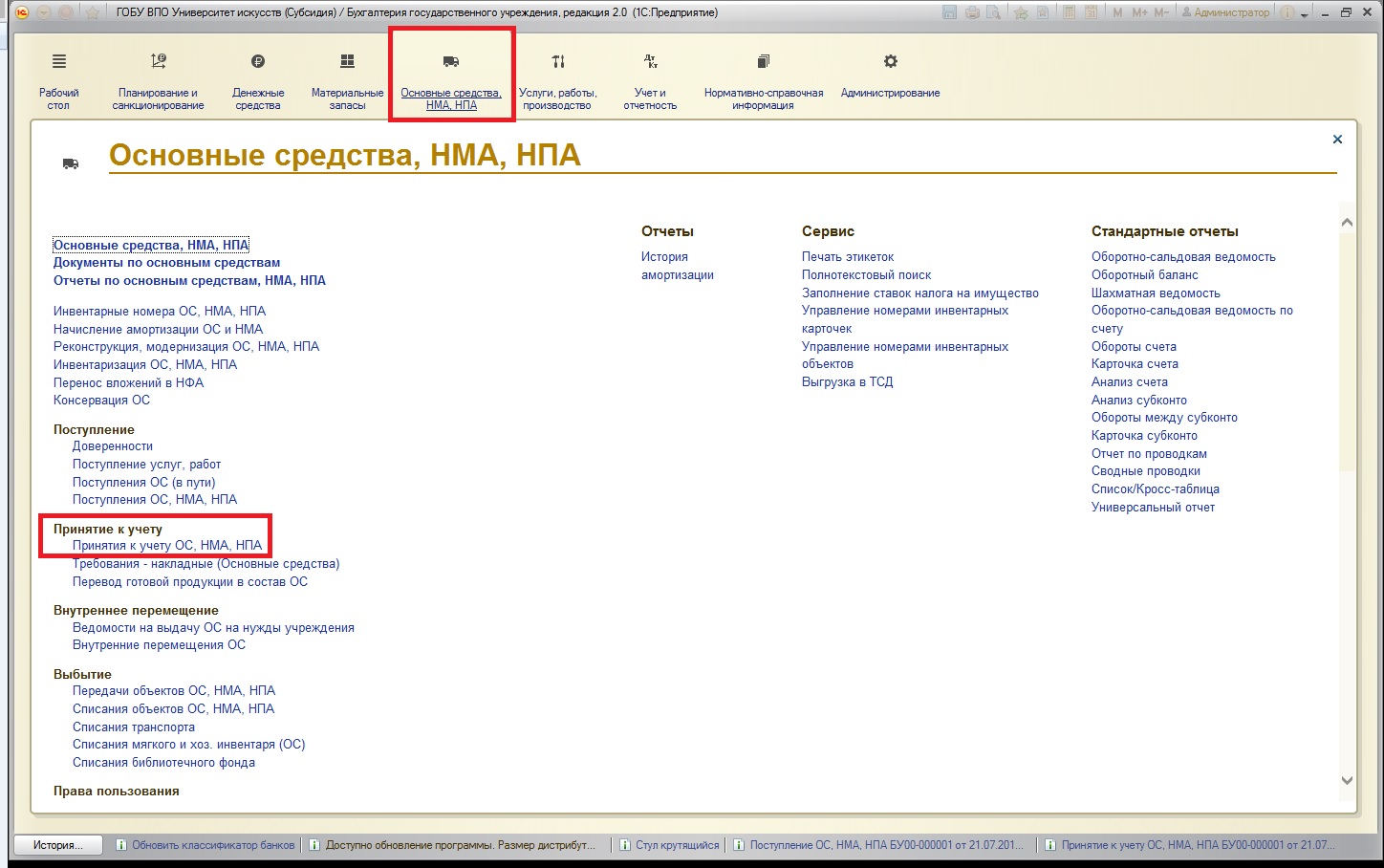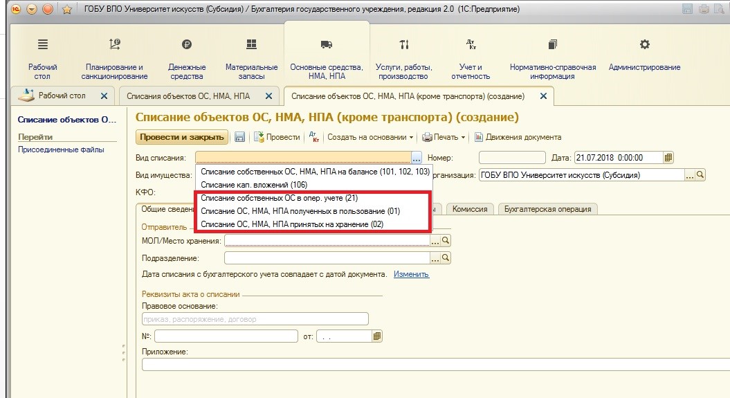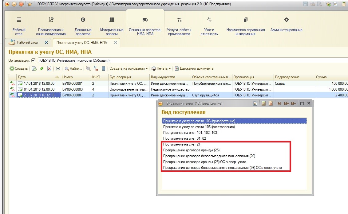 Учет основных средств на забалансовых счетах в 1С: БГУ 8