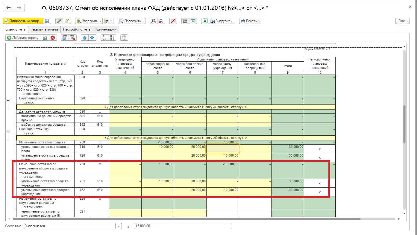Хочется сделать небольшую оговорку на тему отражения данных хозяйственных операций в отчете ф. 0503737. Данный отчет заполняется на основании плановых назначений (плана финансово-хозяйственной деятельности) и записей по аналитическим счетам 17 и 18.