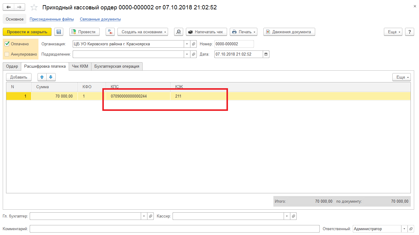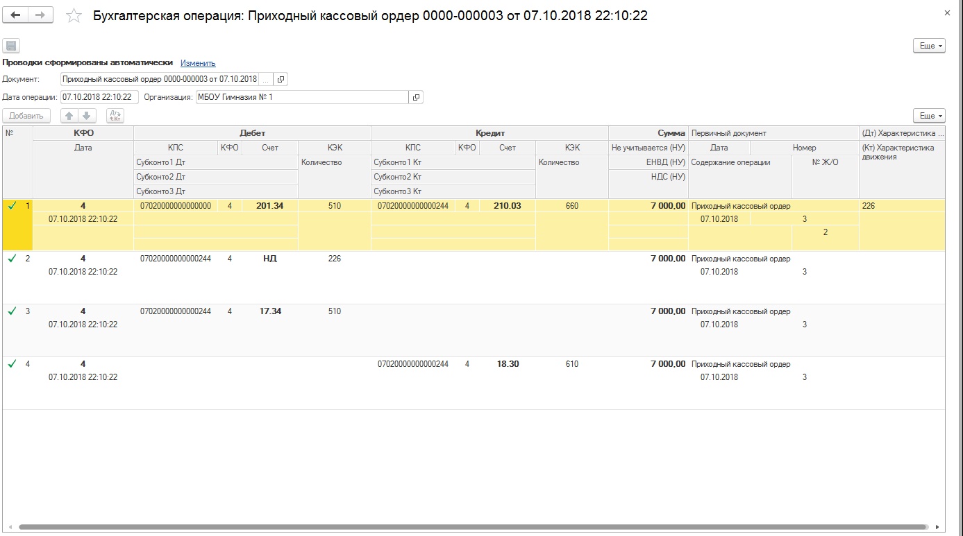 Таких операций в течение дня может быть очень много. Первичным документом является приходный кассовый ордер.