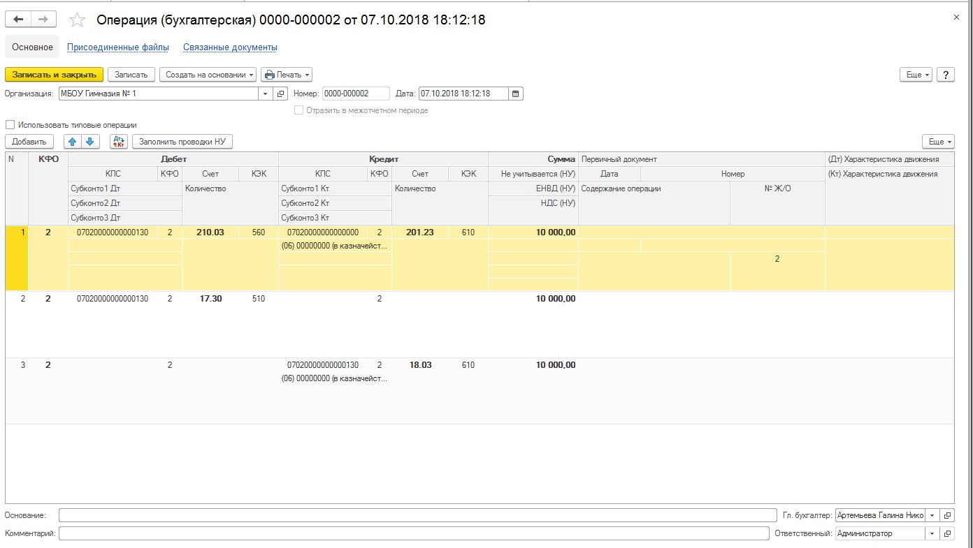 На этом этапе должны быть сформированы проводки: