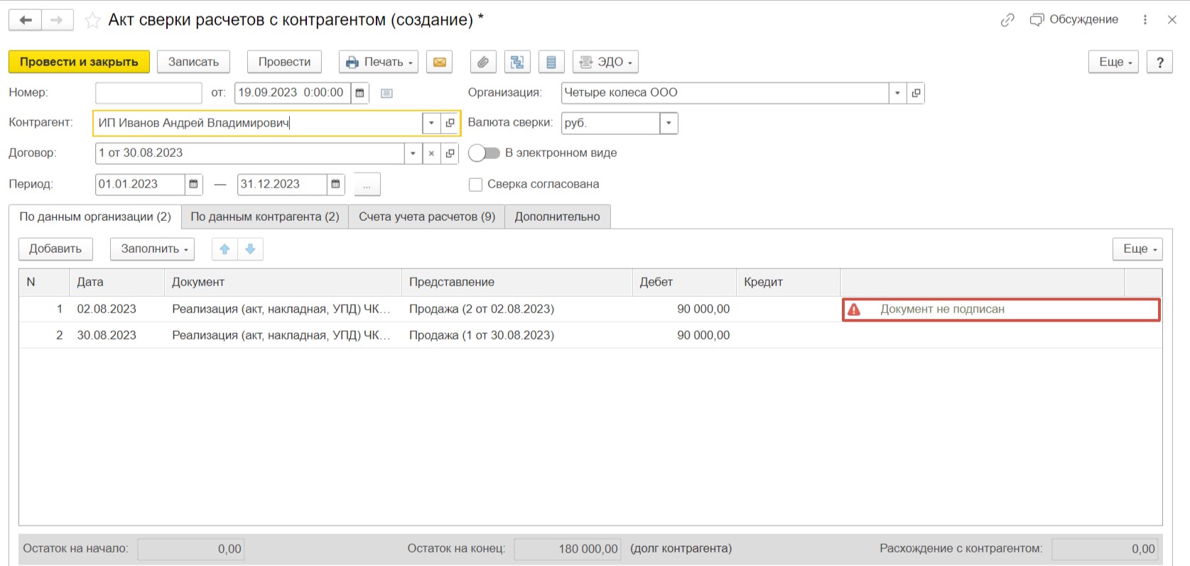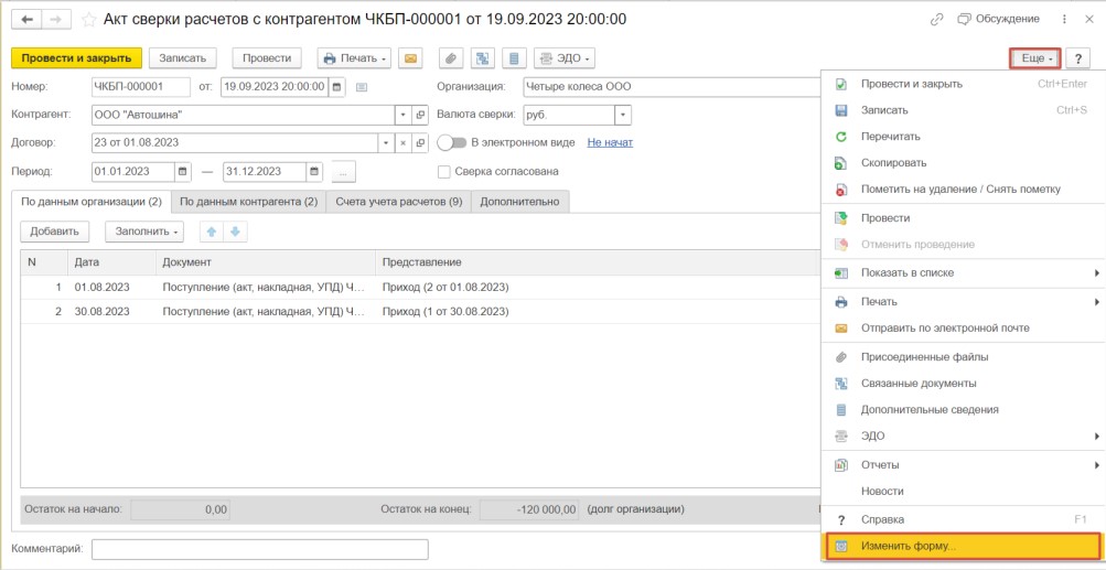 Сформируем акт сверки.
