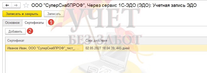 Перейдите на вкладку «Сертификаты», затем нажмите кнопку «Добавить», чтобы начать процесс добавления подписи сотрудника.
