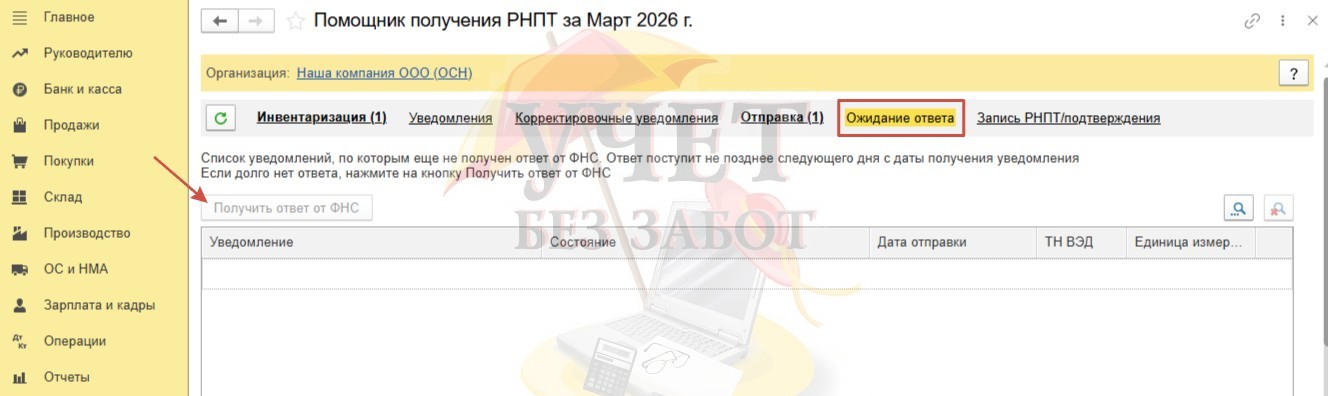 Далее компания может отслеживать процесс получения ответа от налогового органа, воспользовавшись закладкой «Ожидание ответа».
