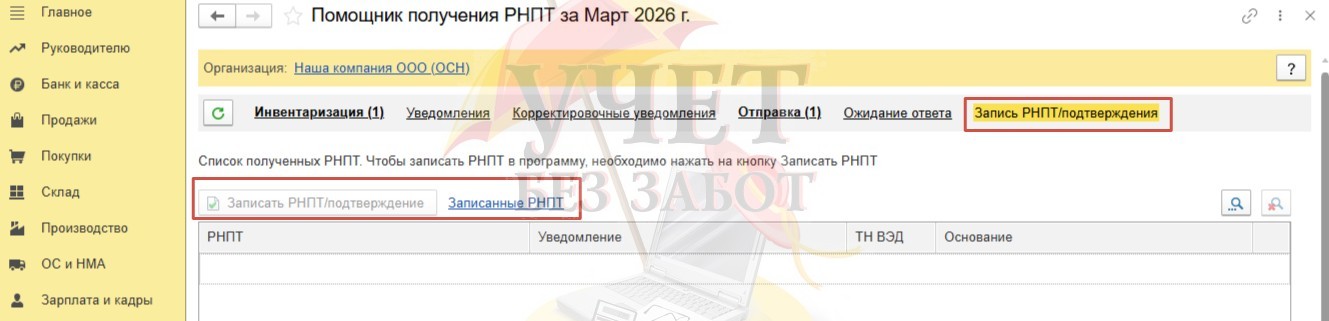 И, наконец, на закладке «Запись РНПТ/подтверждения» организация, получив номера из ФНС, запишет их в свою программу. В свою очередь, номера РНПТ отразятся в регистре «Прослеживаемые товары».