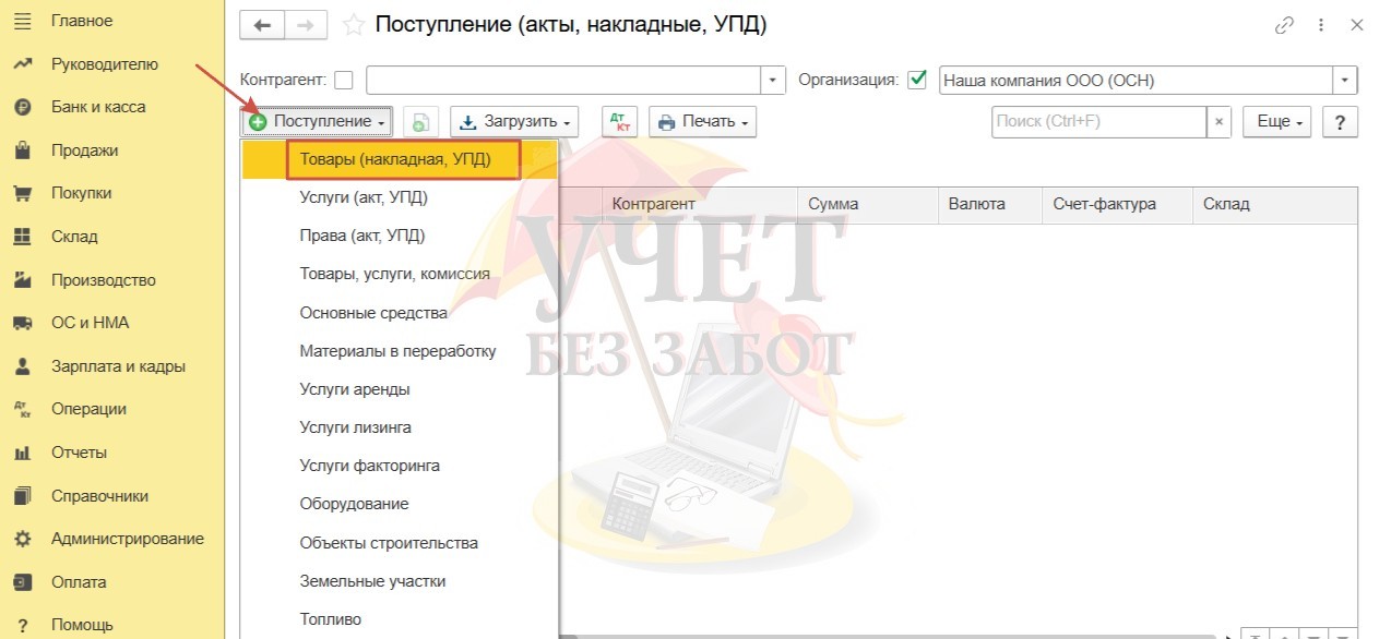 Вид документа в таком случае будет: «Товары (накладная, УПД)».