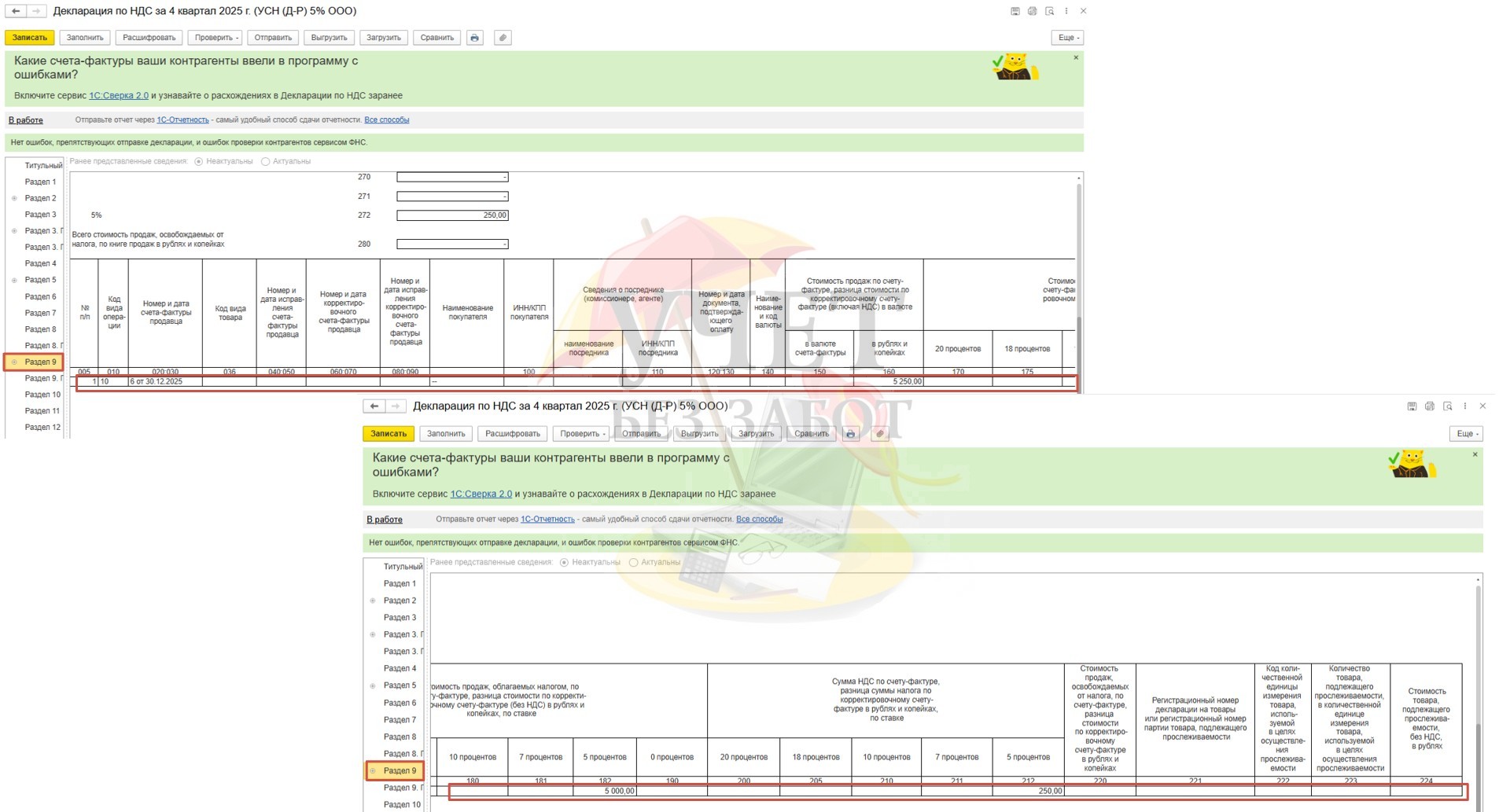 Счет-фактура с кодом вида операции «10» корректно зарегистрирована в книге продаж по Разделу 9.