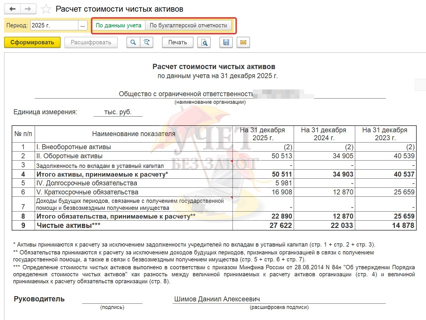 Важное изменение с 2025 года: показатель чистых активов больше не рассчитывается в самой бухгалтерской отчетности. Эту форму убрали из состава отчетности.