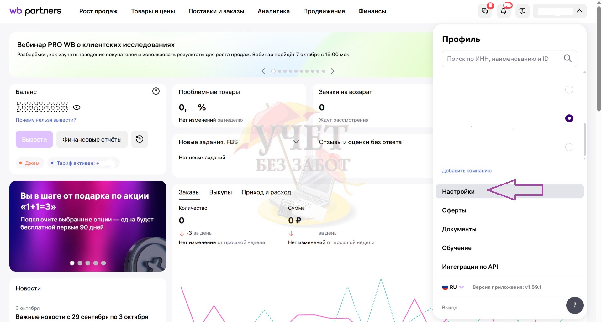 Чтобы подключить или отключить функцию продаж юридическим лицам, в личном кабинете нужно зайти в раздел «Настройки»: