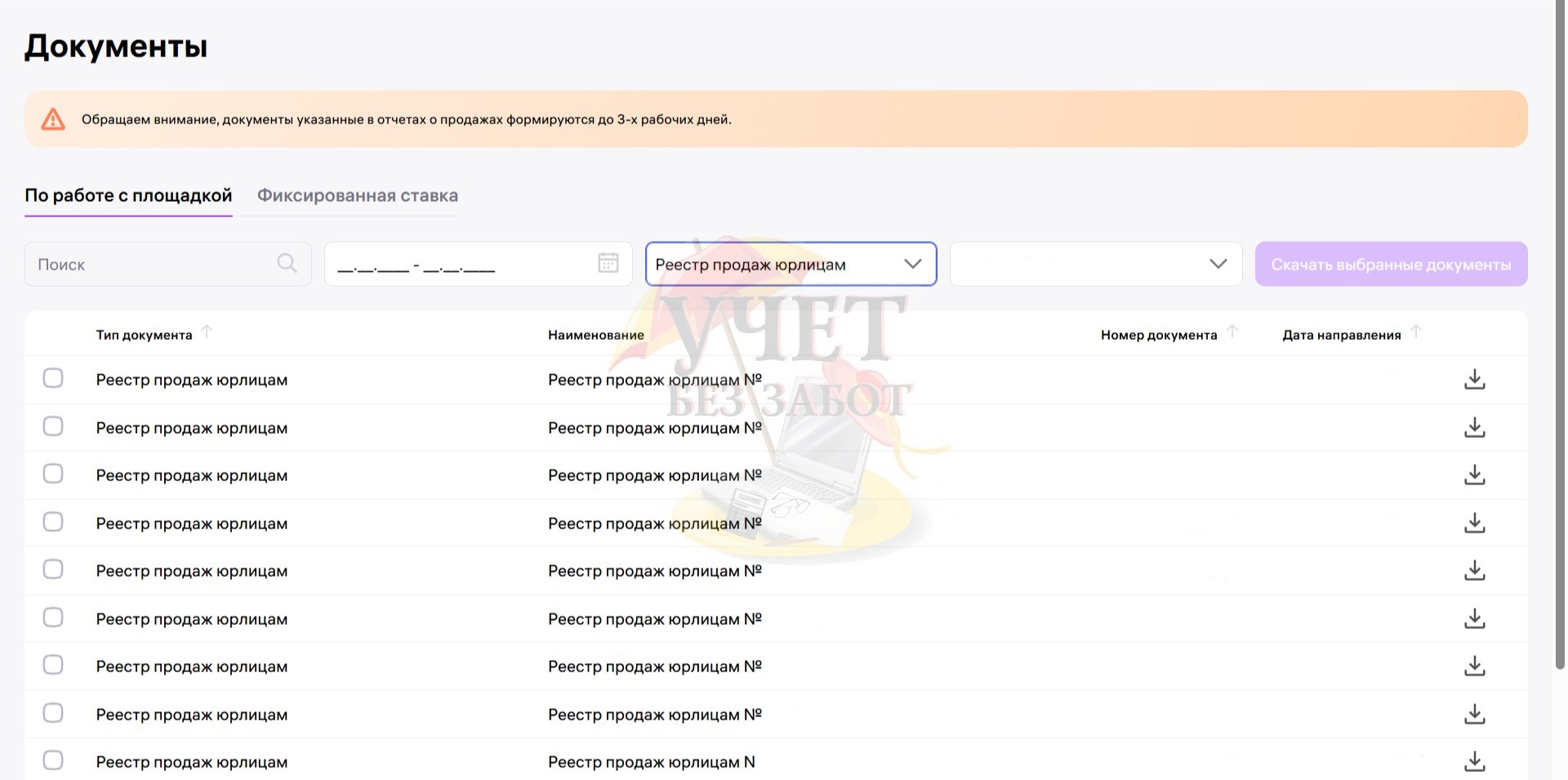 Также в личном кабинете в разделе «Документы» можно скачать реестр продаж юридическим лицам: