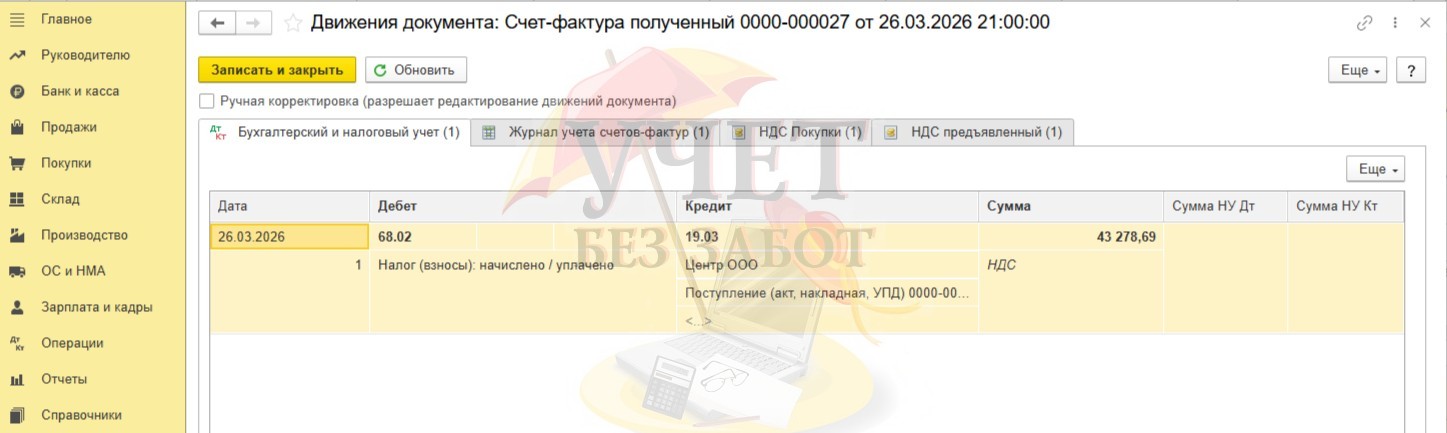 Проводки, сформированные после проведения счет-фактуры, свидетельствуют о применении вычета по НДС.