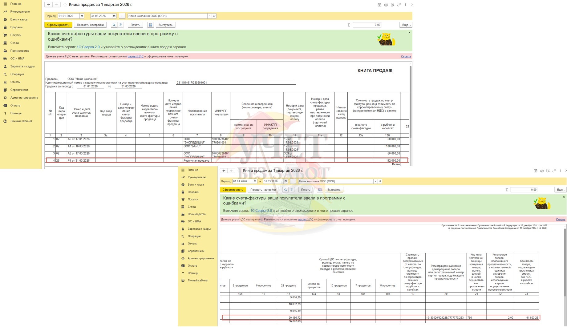 Сводная справка за 1 квартал 2026 года с кодом операции «26» будет зарегистрирована в книге продаж, которую можно сформировать в разделе «Отчеты» - «Книга продаж». Код «26» применяется при реализации лицам, не являющихся плательщиками НДС.