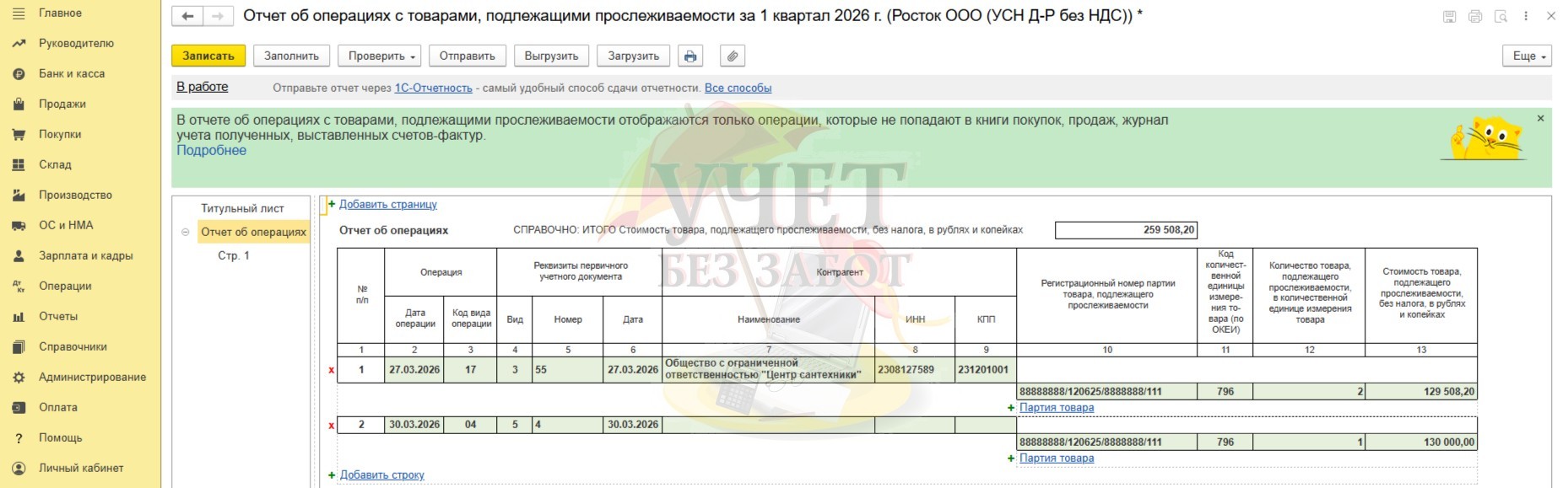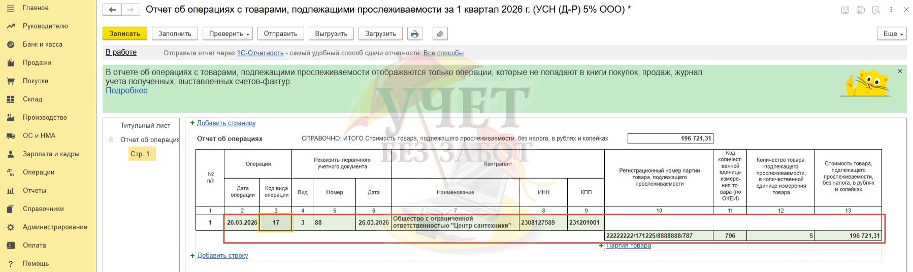Все необходимые данные будут отражены в отчете об операциях с товарами, подлежащими прослеживаемости.
