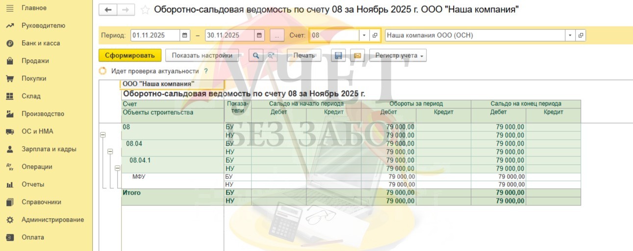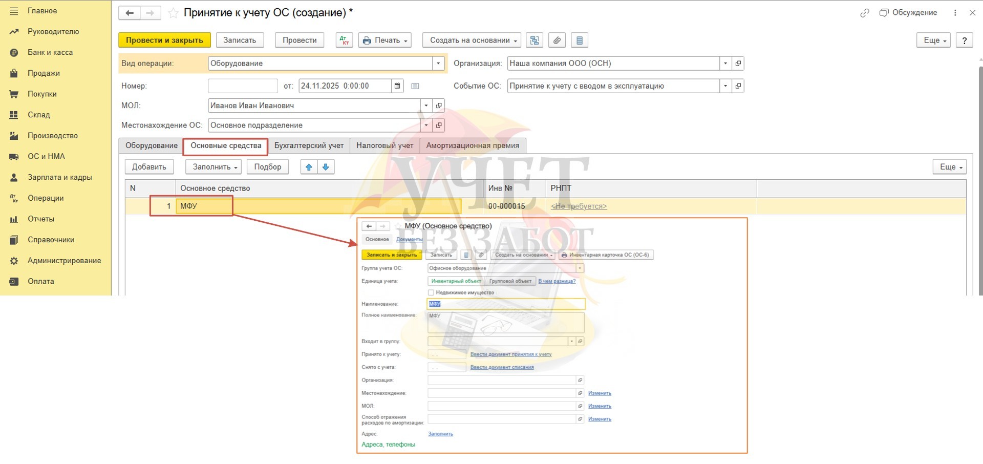 24.11.2025 г. МФУ принято к учету в качестве основного средства: