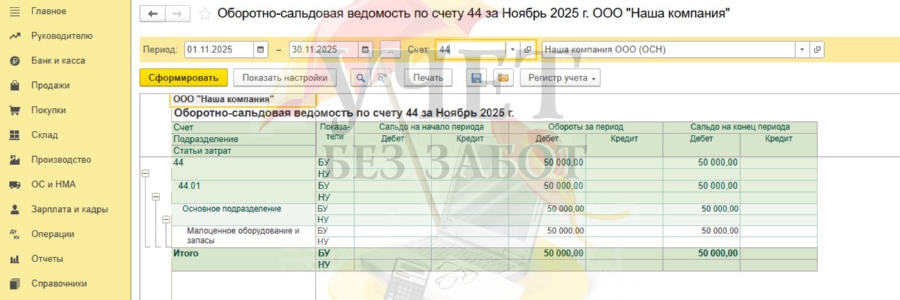 После закрытия ноября ОСВ по 44 счету имеет такой вид: