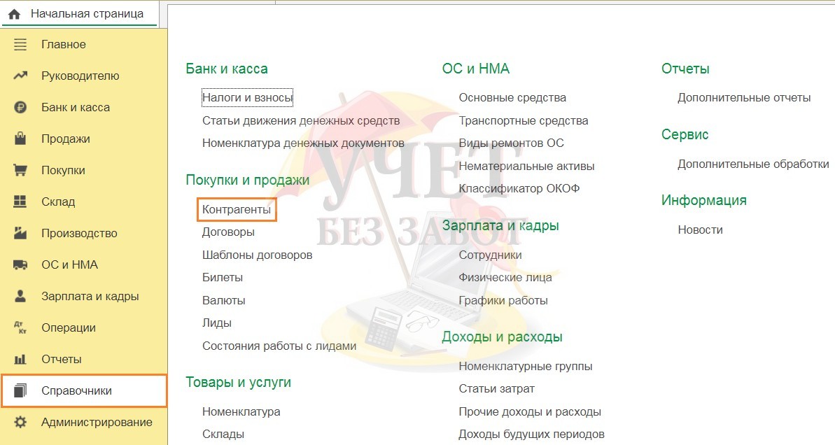 После чего можно переходить к регистрации комиссионера в числе контрагентов.