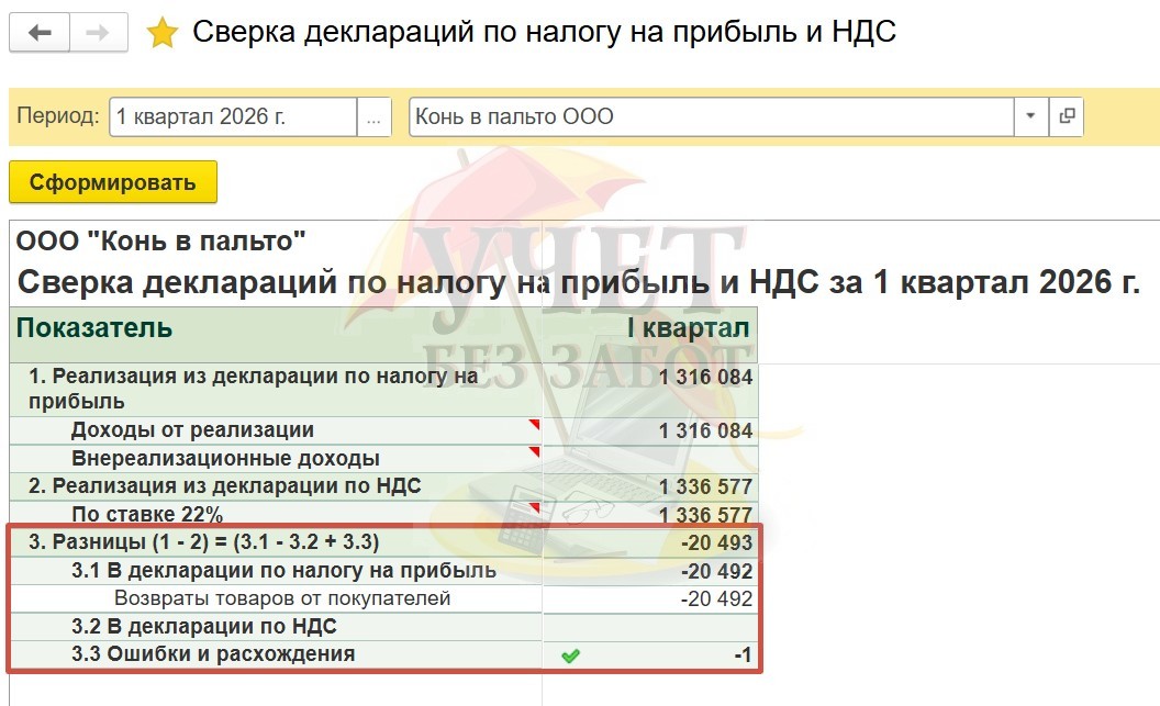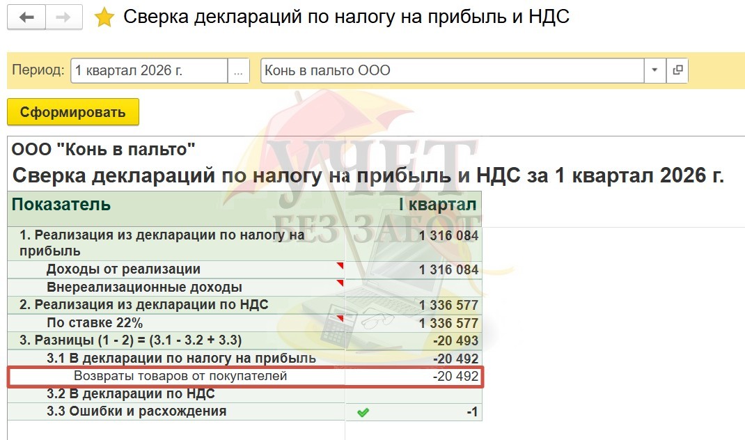 Отчет «Сверка деклараций по налогу на прибыль и НДС» действительно удобный и полезный, так как существенно экономит время бухгалтера и помогает при ответах на требования!