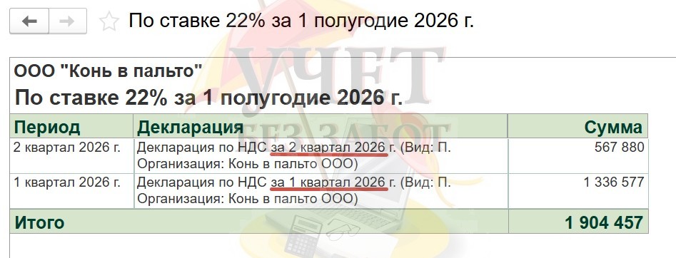А по НДС в отчете отразятся суммарные данные из деклараций за 1 и 2 квартал.