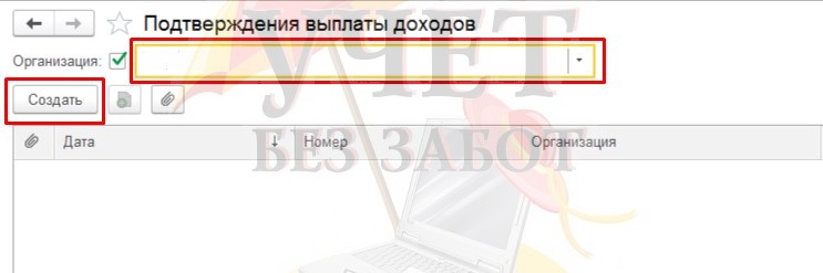 При создании отдельного документа «Подтверждения выплаты доходов» необходимо выбрать нужную организацию и конкретную ведомость.