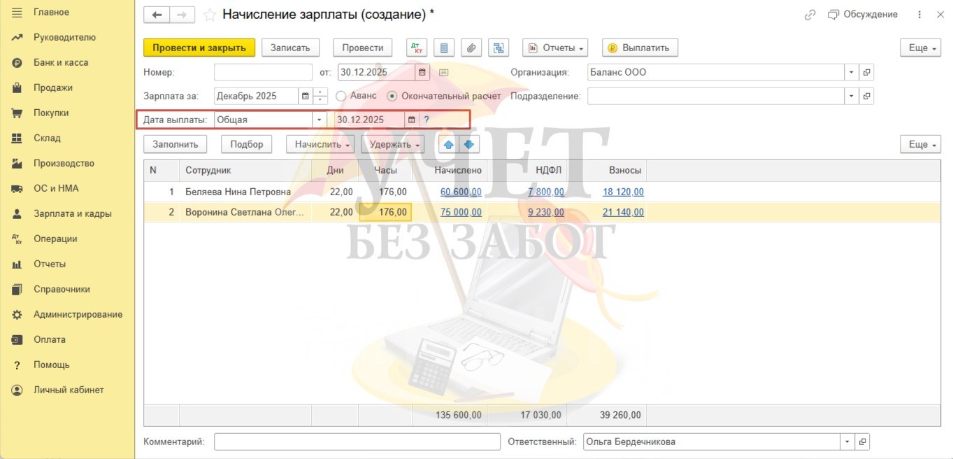 На зарплату нужно делать отдельное начисление?
