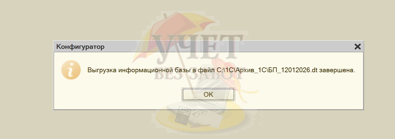 Вариант 2 - Создание резервной копии средствами 1С