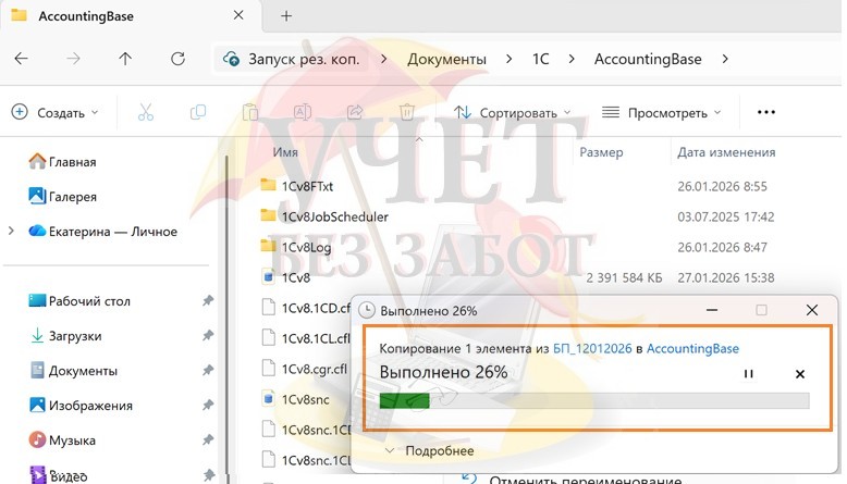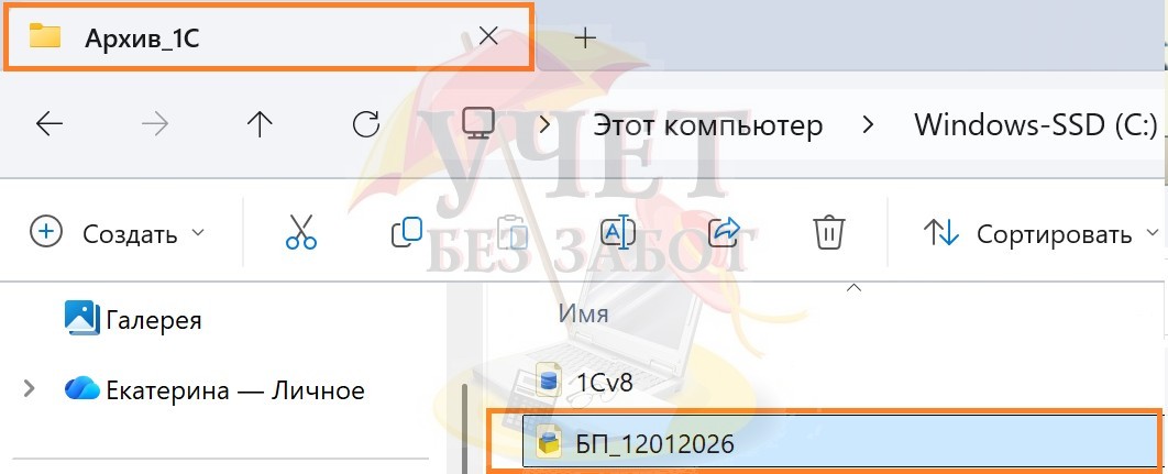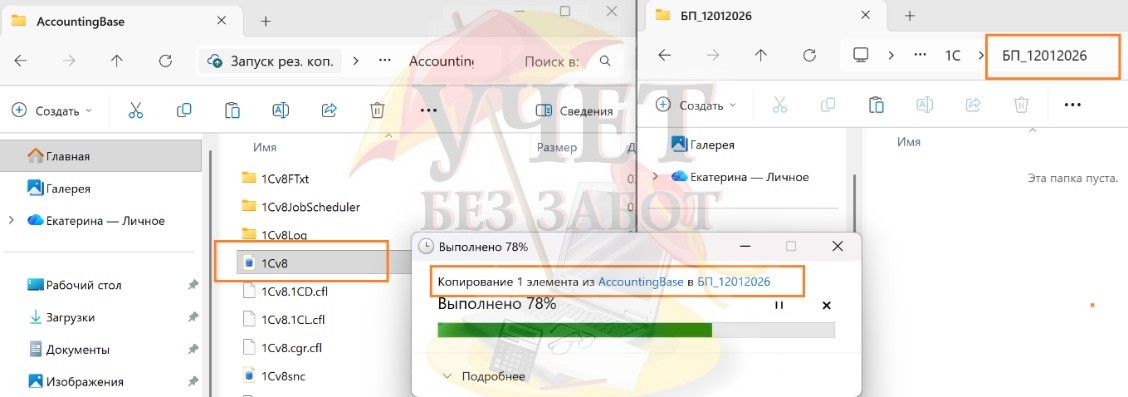 Каталог рекомендуем создать на внешнем носителе, например, флешке. Созданный каталог рекомендуем назвать по шаблону «Имя базы_дата». Например, БП_12012026.