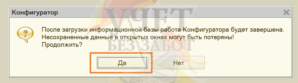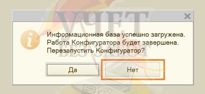 4. Затем нужно дождаться загрузки базы 1С и закрыть Конфигуратор.