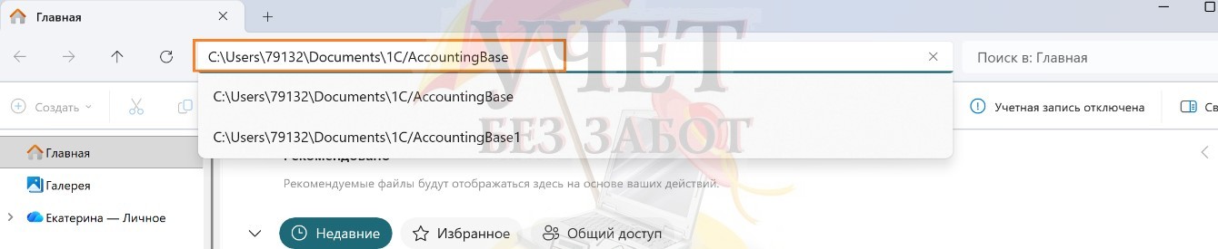 Далее нужно вставить скопированный путь в адресную строку в Проводнике. Проводник можно открыть, используя горячие клавиши Win+E или иконку на рабочем столе «Этот компьютер». Вставить ранее скопированный путь к каталогу с базой 1С можно, используя горячие клавиши Ctrl+V с клавиатуры.