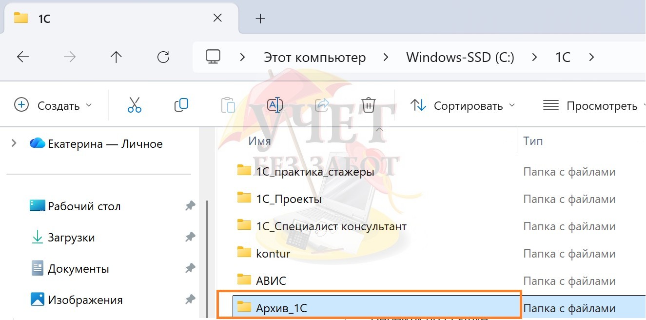 Каталог рекомендуем создать на внешнем носителе, например, флешке. Созданный каталог рекомендуем назвать так, чтобы его легко можно было найти, например, «Архив_1С».