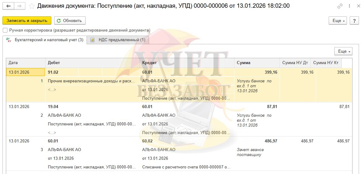 Комиссия банка с НДС в 1С: Бухгалтерии предприятия ред. 3.0
