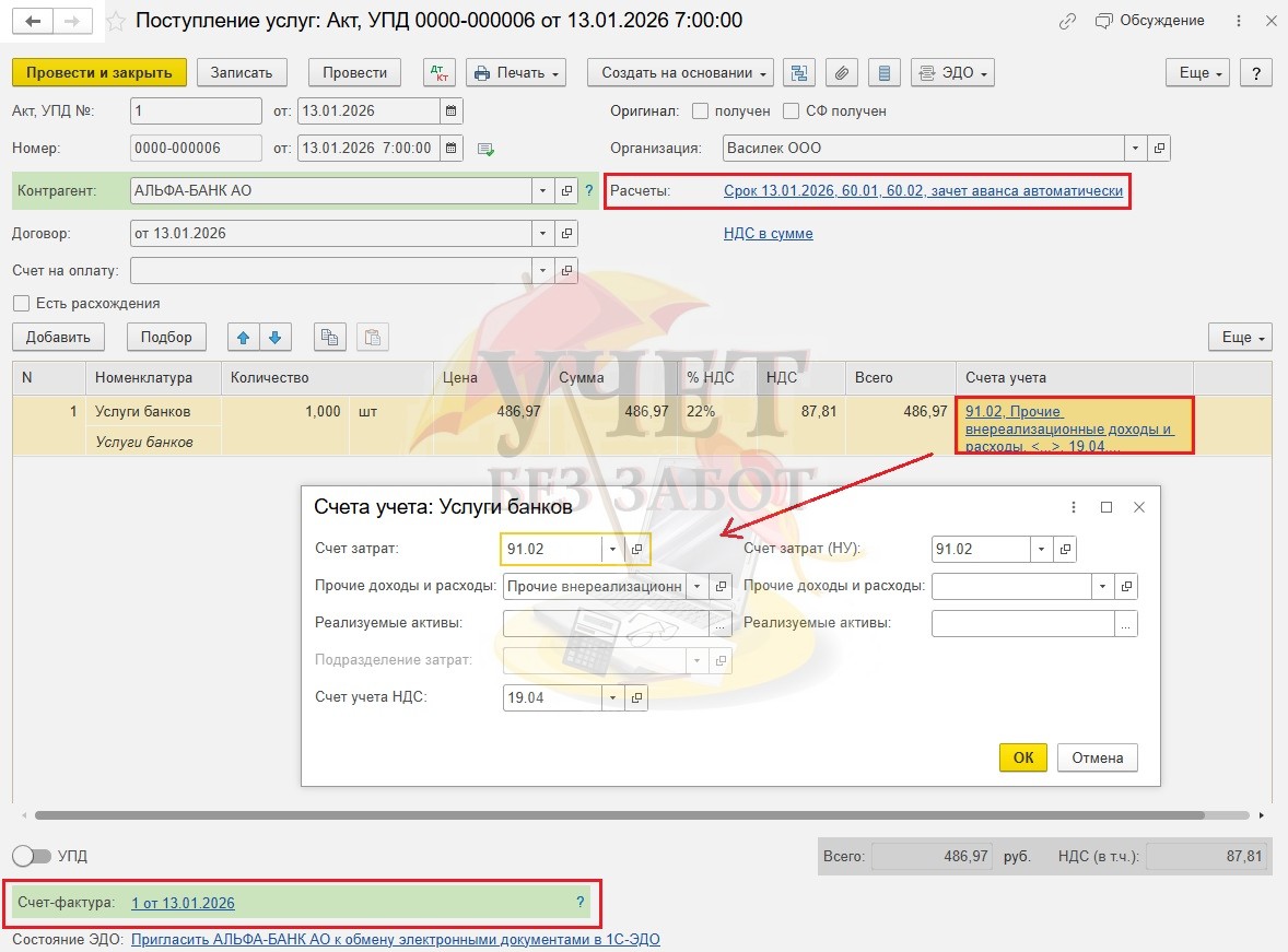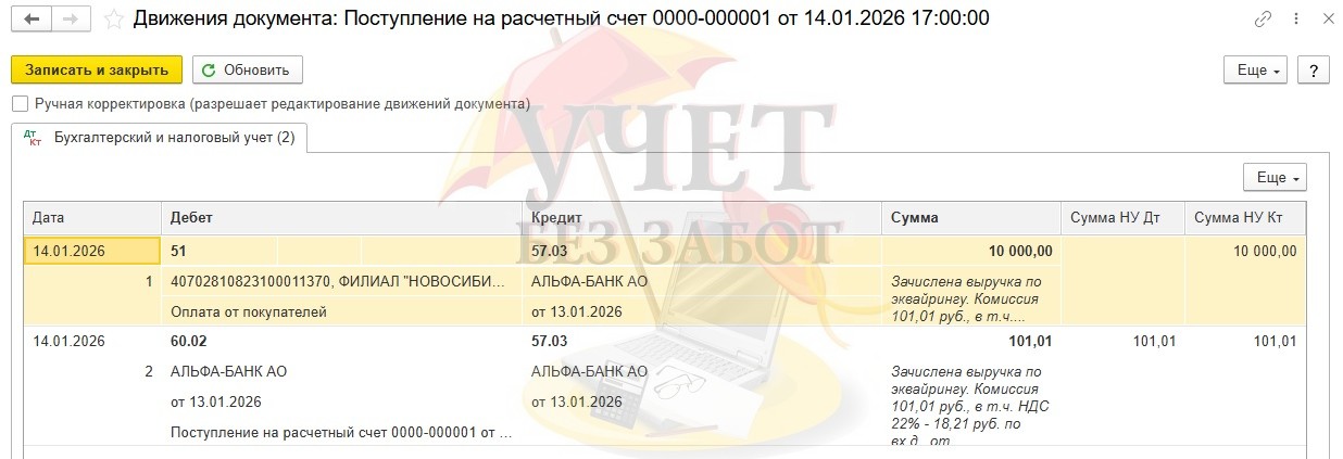 Также под 22% НДС с 01.01.2026 г. попала комиссия банка по эквайрингу.