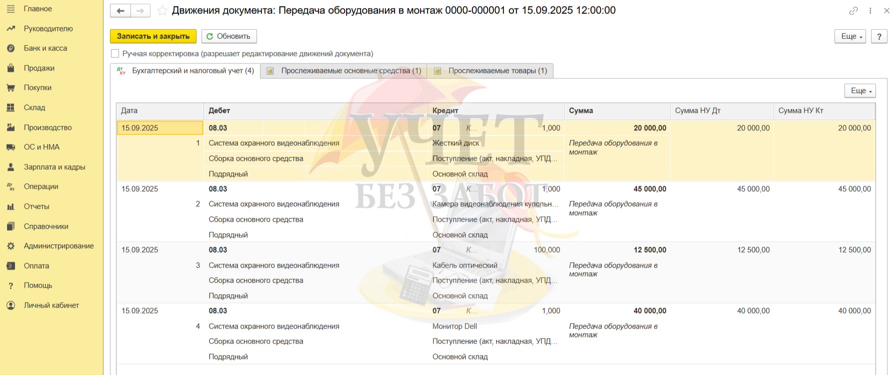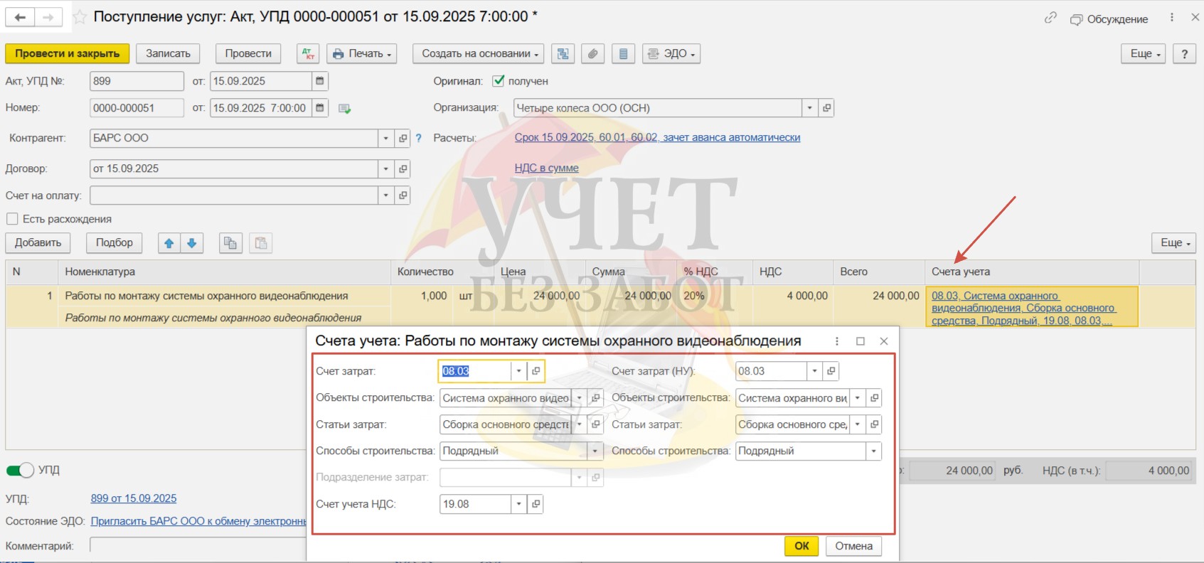Теперь счет 08.03 по объекту системы видеонаблюдения будет закрыт.