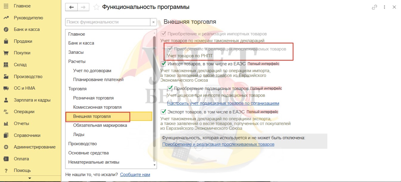 а на вкладке «Торговля» - «Внешняя торговля» - «Приобретение и реализация прослеживаемых товаров».