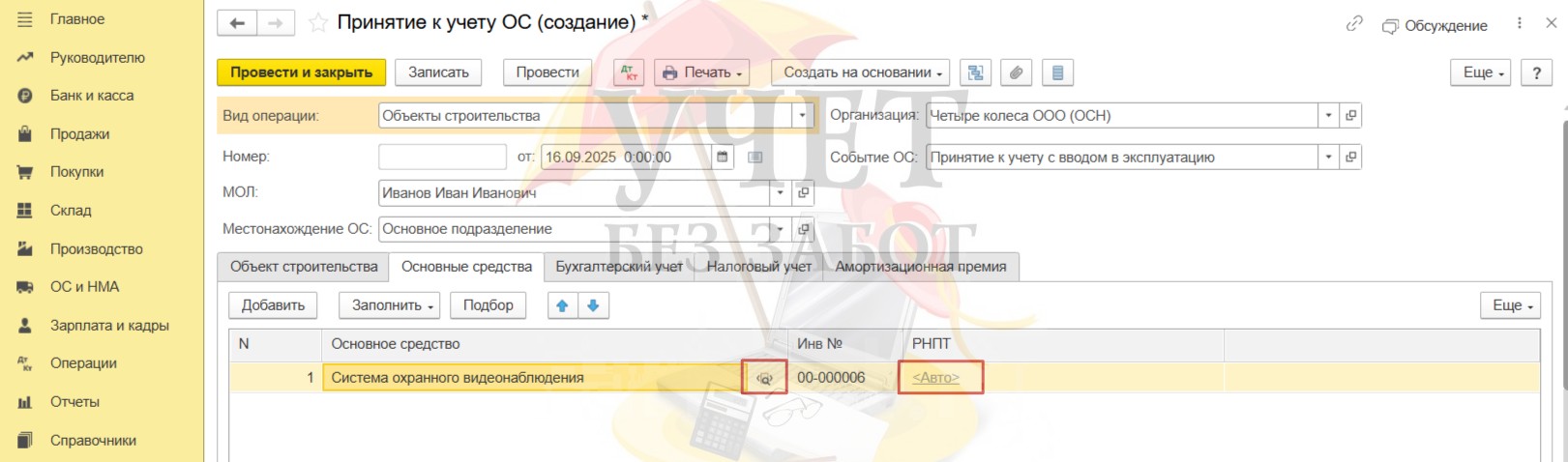 Шаг 5 – Введение в эксплуатацию основного средства