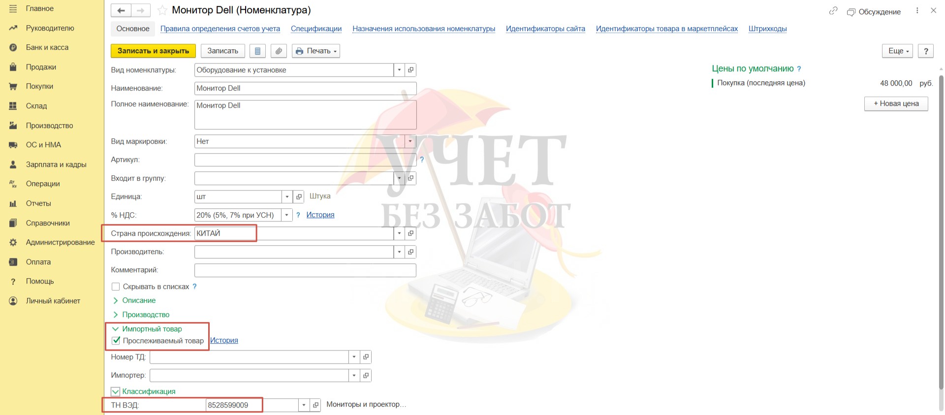 - монитор (1шт.) – 48 000 руб. (в т.ч. НДС – 8 000 руб.).
