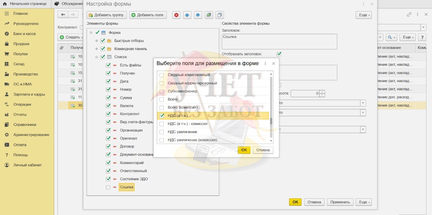 Находим пункт «НДС в т.ч.» и ставим галочку (или другой параметр, который вам нужно вывести):
