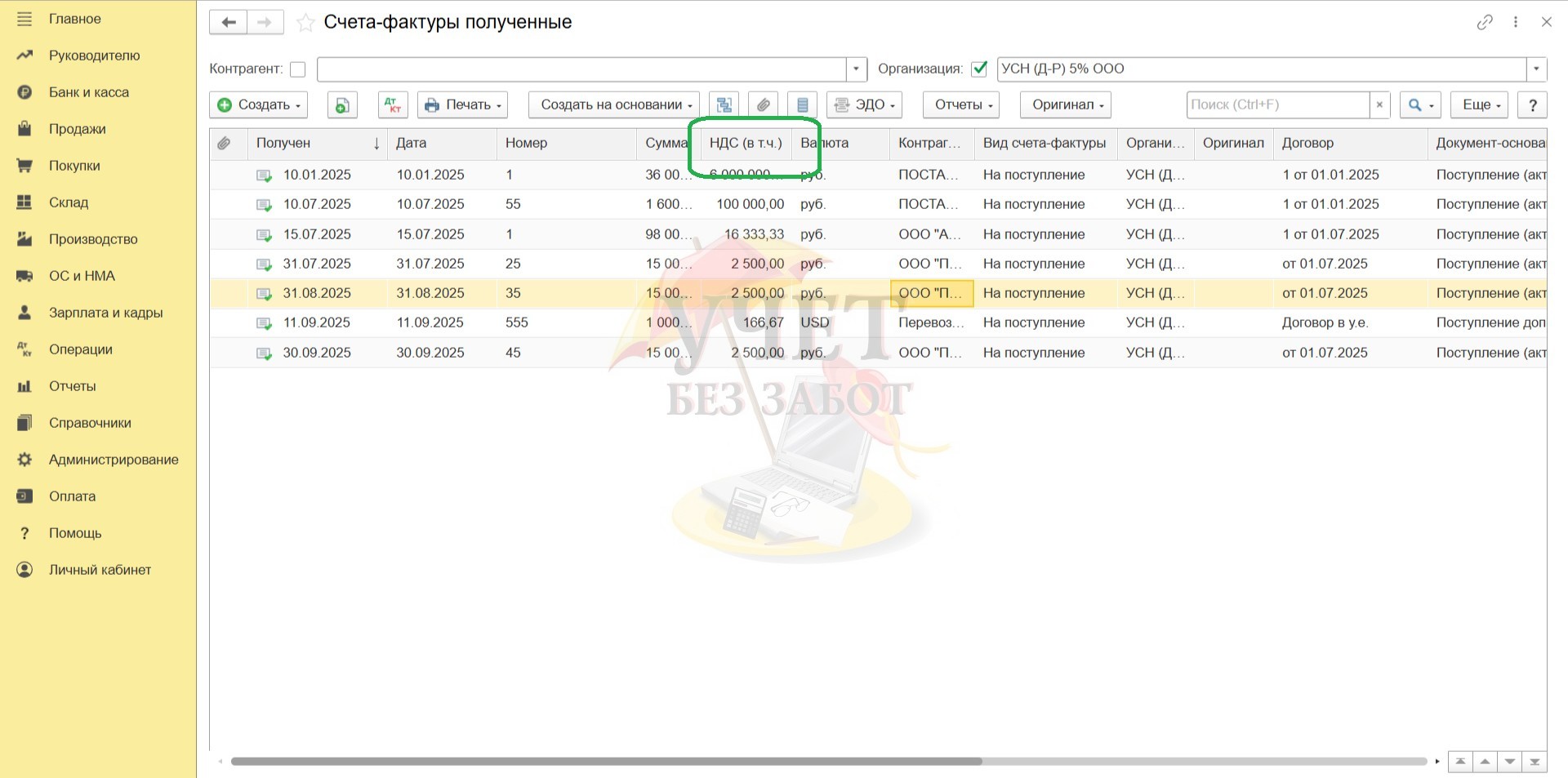 В преддверии закрытия года, а также грядущей налоговой реформы 2026 г. всё чаще бухгалтеры задаются вопросом, как можно посмотреть входящий НДС на УСН? Если вы работаете без НДС или на льготных ставках, то у вас не будет проводки по 19 счету, где это можно было бы посмотреть, и вся сумма поступлений идет в расходы. В этой публикации поделимся сразу двумя лайфхаками как это можно сделать за считанные секунды в 1С: Бухгалтерии предприятия ред. 3.0.