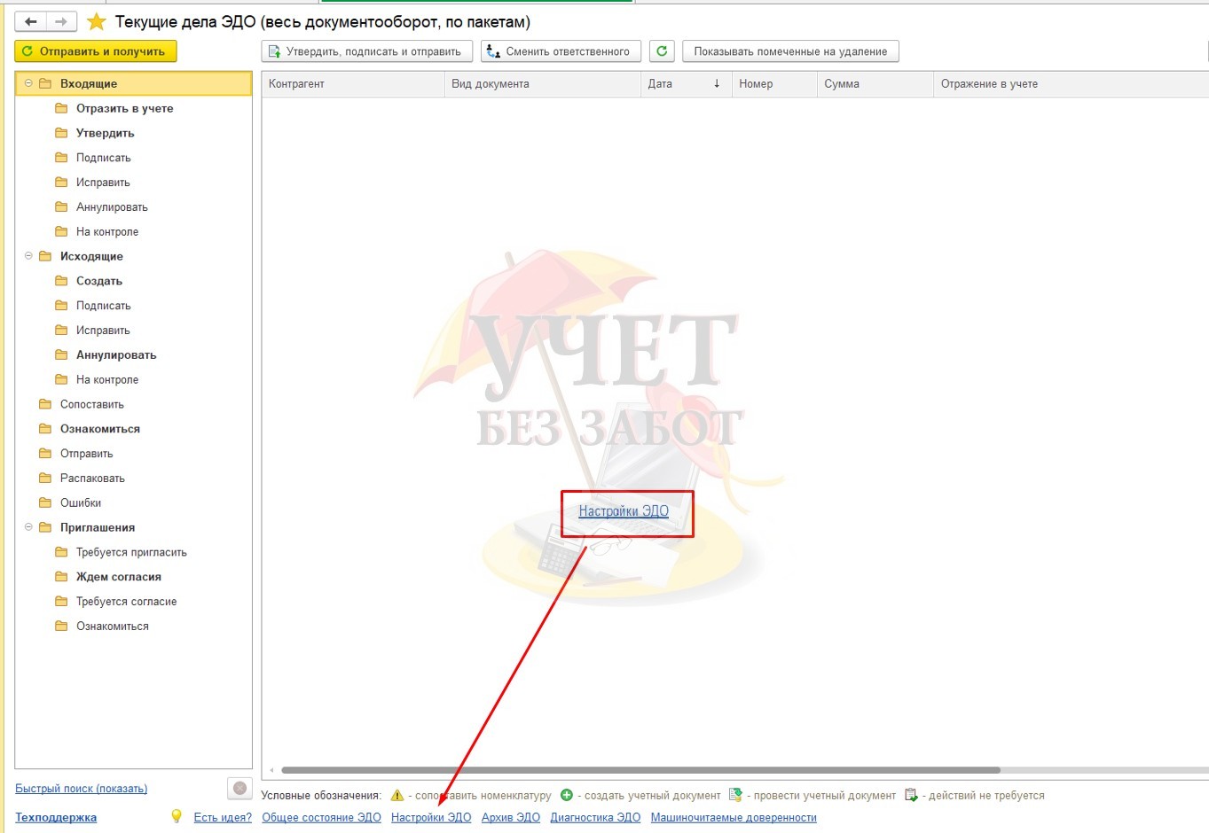 2. В нижней части экрана нажать на «Настройки ЭДО».