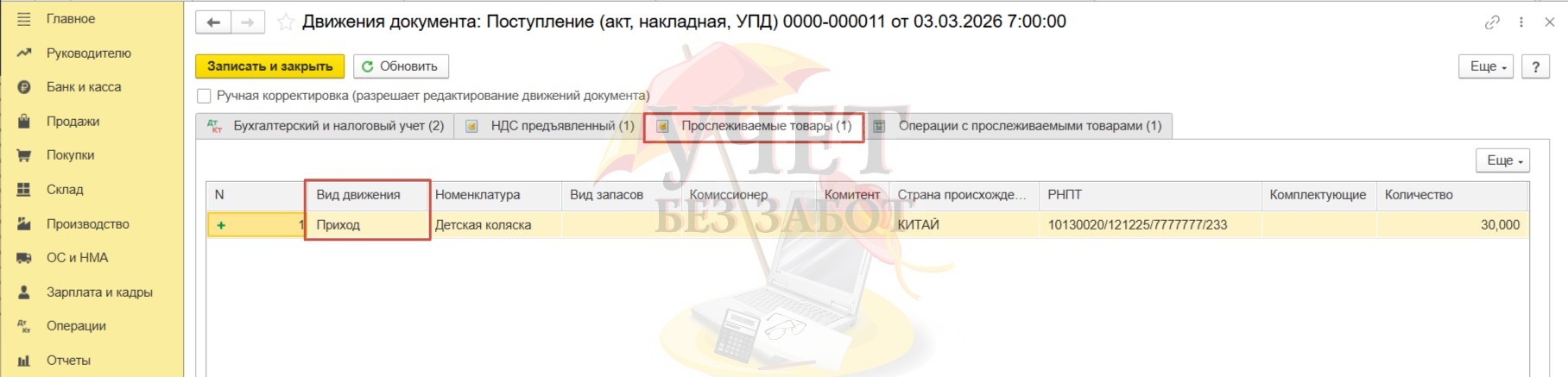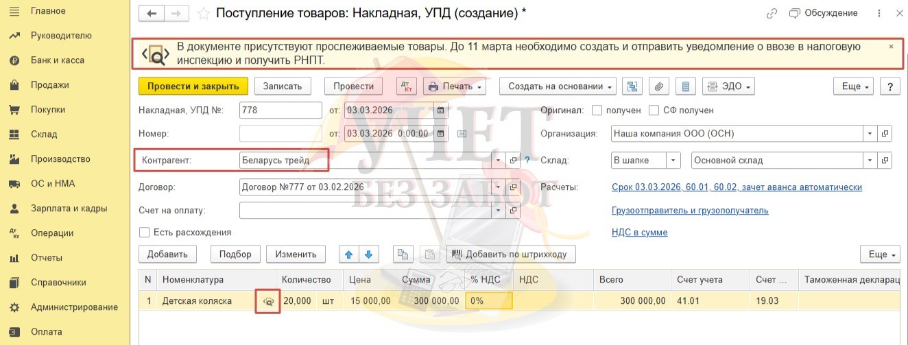 Поступление прослеживаемых товаров в 1С: Бухгалтерии предприятия ред. 3.0