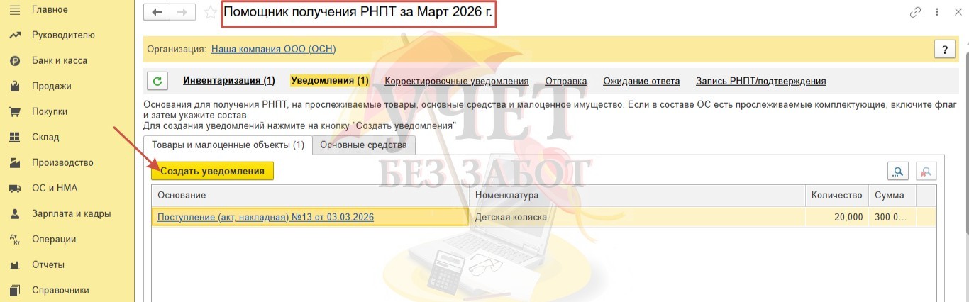 Программа автоматически перенаправит пользователя в «Помощник получения РНПТ». Уведомление о ввозе прослеживаемого товара из государств-членов ЕАЭС можно создать по кнопке «Создать уведомления».
