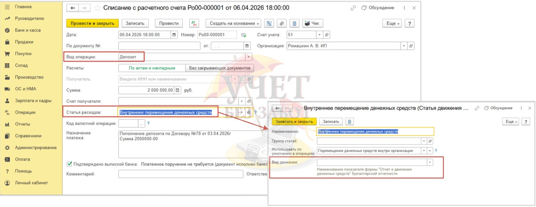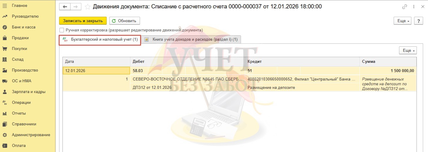 Учет депозита и процентов по нему для ИП с 2026 года в 1С: Бухгалтерии предприятия ред. 3.0