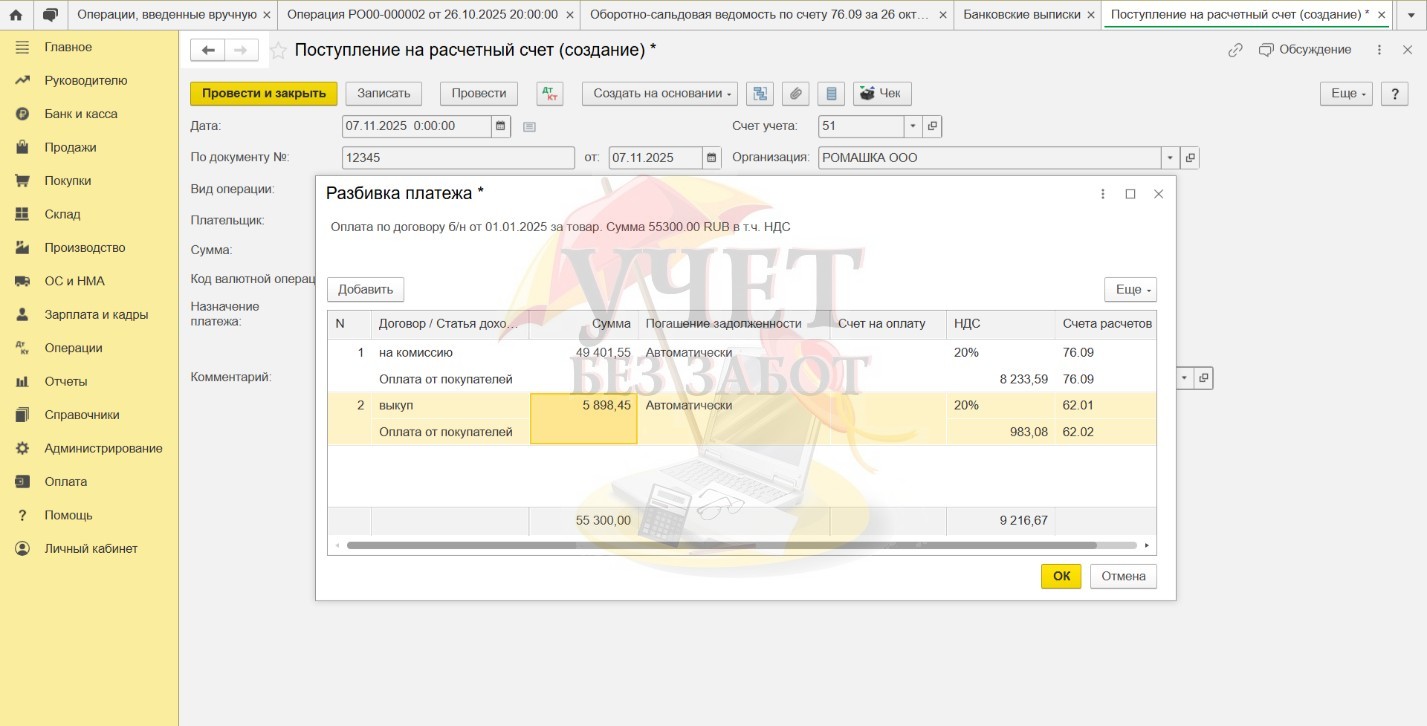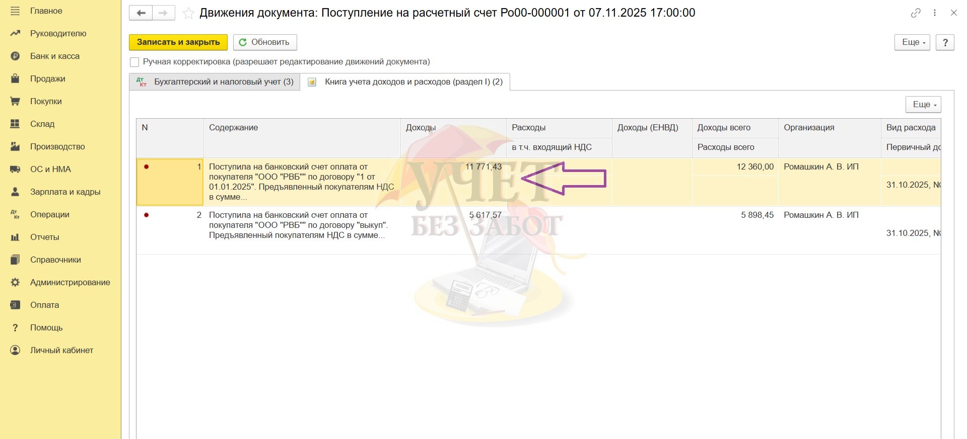 Если вы работаете на ОСНО, то доход можно отразить ручной операцией: