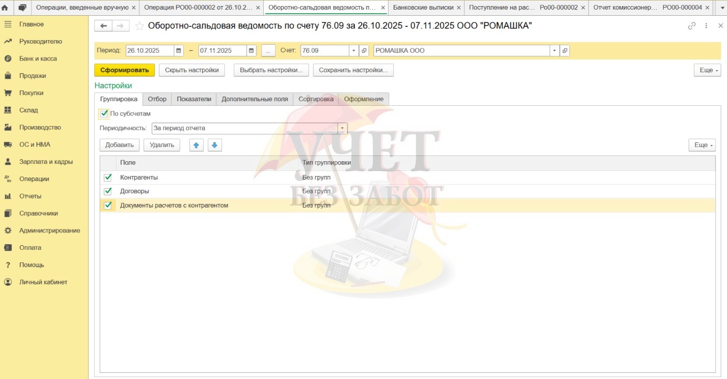 Абсолютно всем рекомендуем проверять оборотно-сальдовую ведомость после ручных проводок в разрезе контрагента, договора и документов расчета: