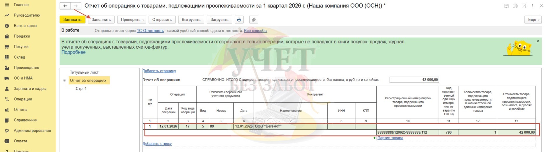 Шаг 4 – Отчетность при покупке прослеживаемого товара
