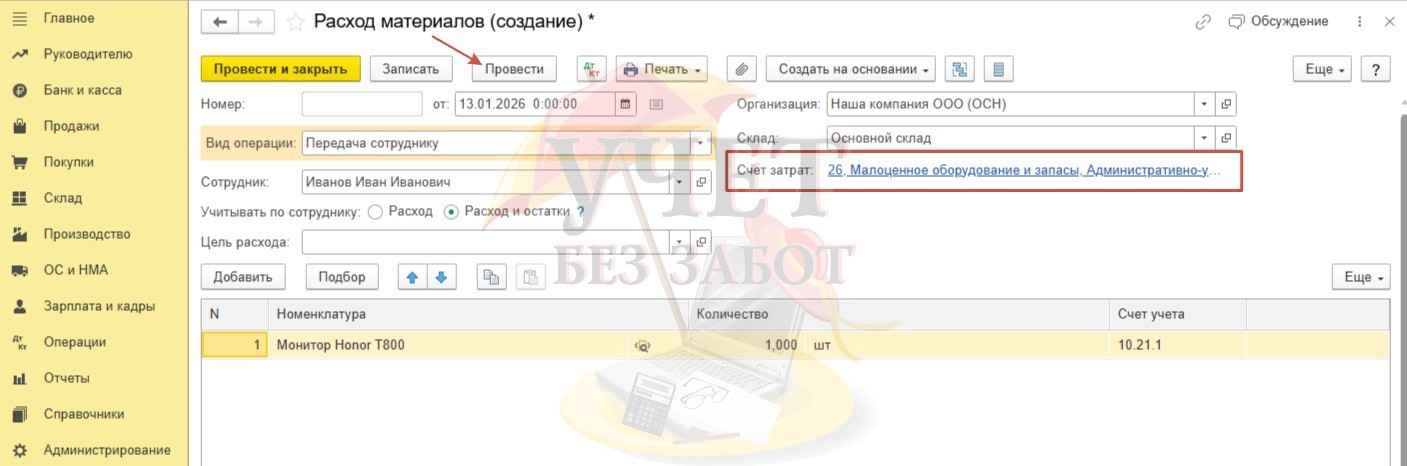 13.01.2026г – монитор передан сотруднику для эксплуатации;