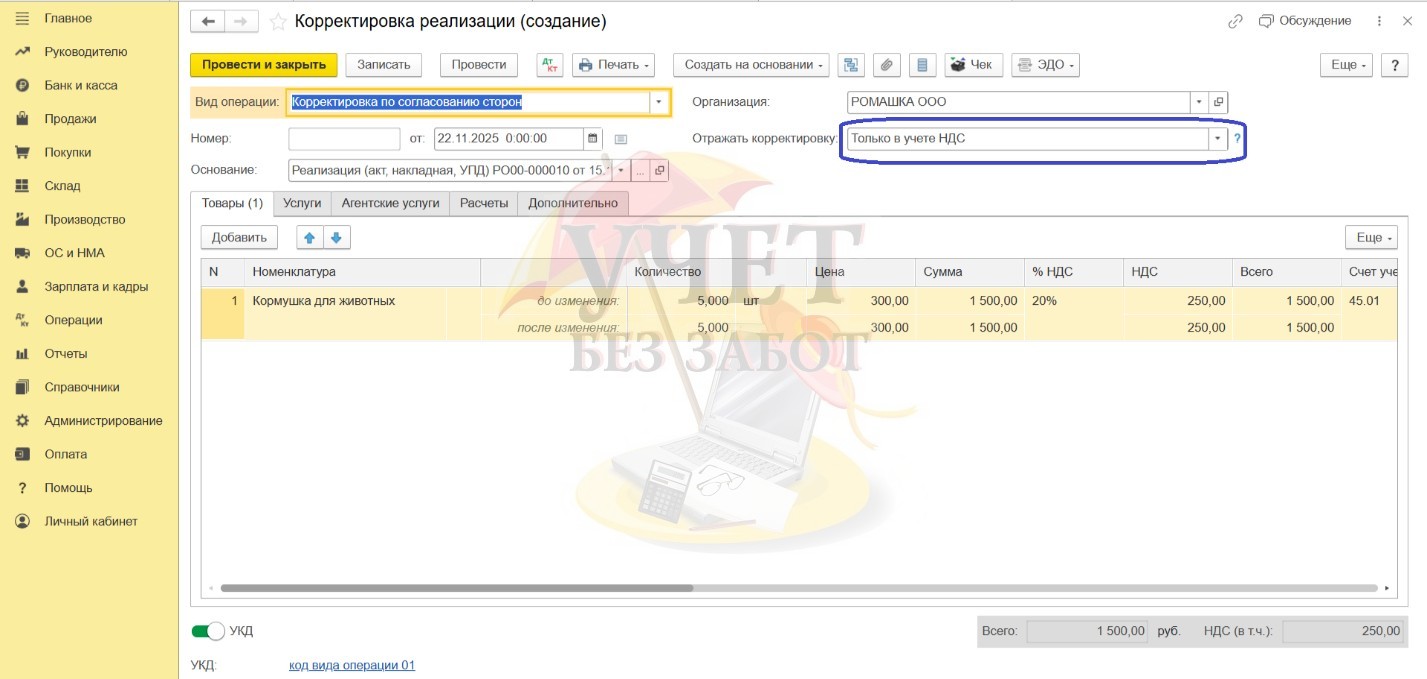 Если вы работаете на УСН без НДС, тогда вам нужно только провести корректировку в 1С, как описано выше. По ЭДО на момент написания статьи отправлять в адрес «Интернет решения» ничего не требуется.