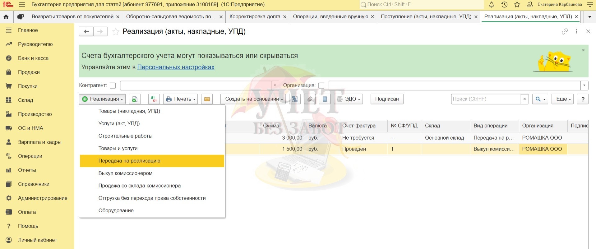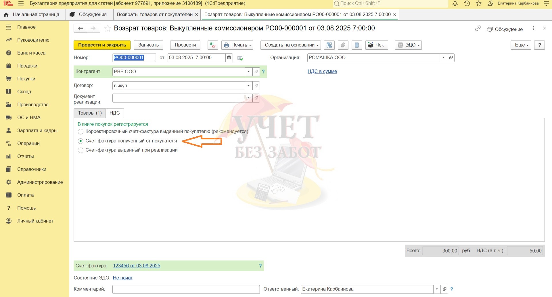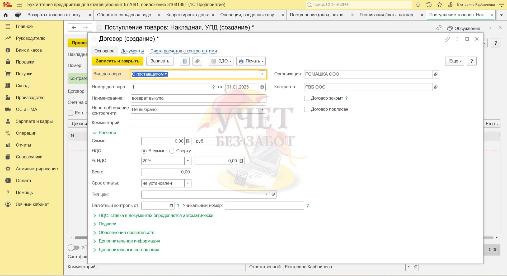 Мы разобрали документы по возврату выкупленного товара, а теперь переходим к проведению операций в 1С: Бухгалтерии.