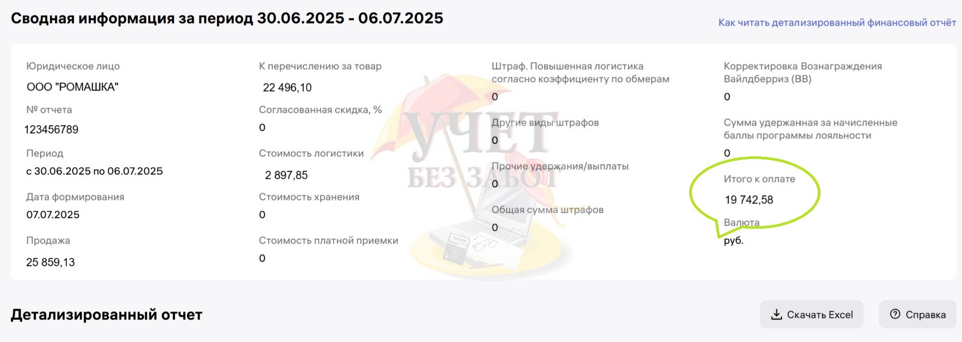 В столбце «Обоснование для оплаты» будет также указано значение «Возврат». Сумму смотрим по столбцу «К перечислению Продавцу за реализованный Товар».