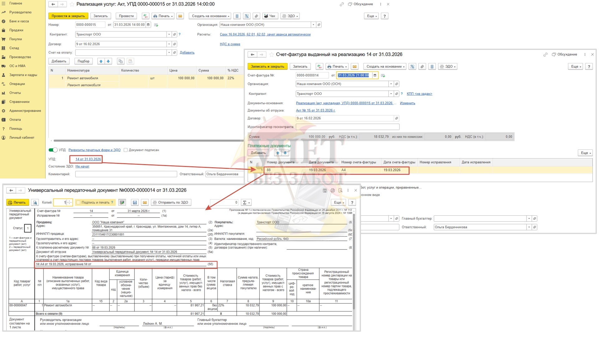 При проведении документов в такой последовательности независимо от того, какой вариант вы используете – УПД либо счет-фактуру,