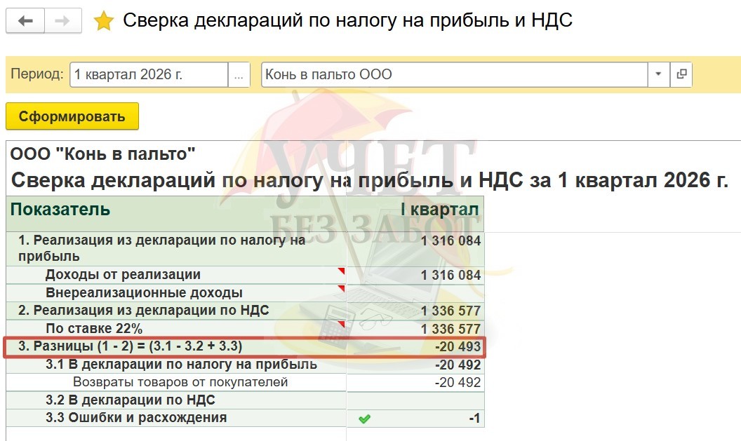 Отчет «Сверка деклараций по налогу на прибыль и НДС» действительно удобный и полезный, так как существенно экономит время бухгалтера и помогает при ответах на требования!